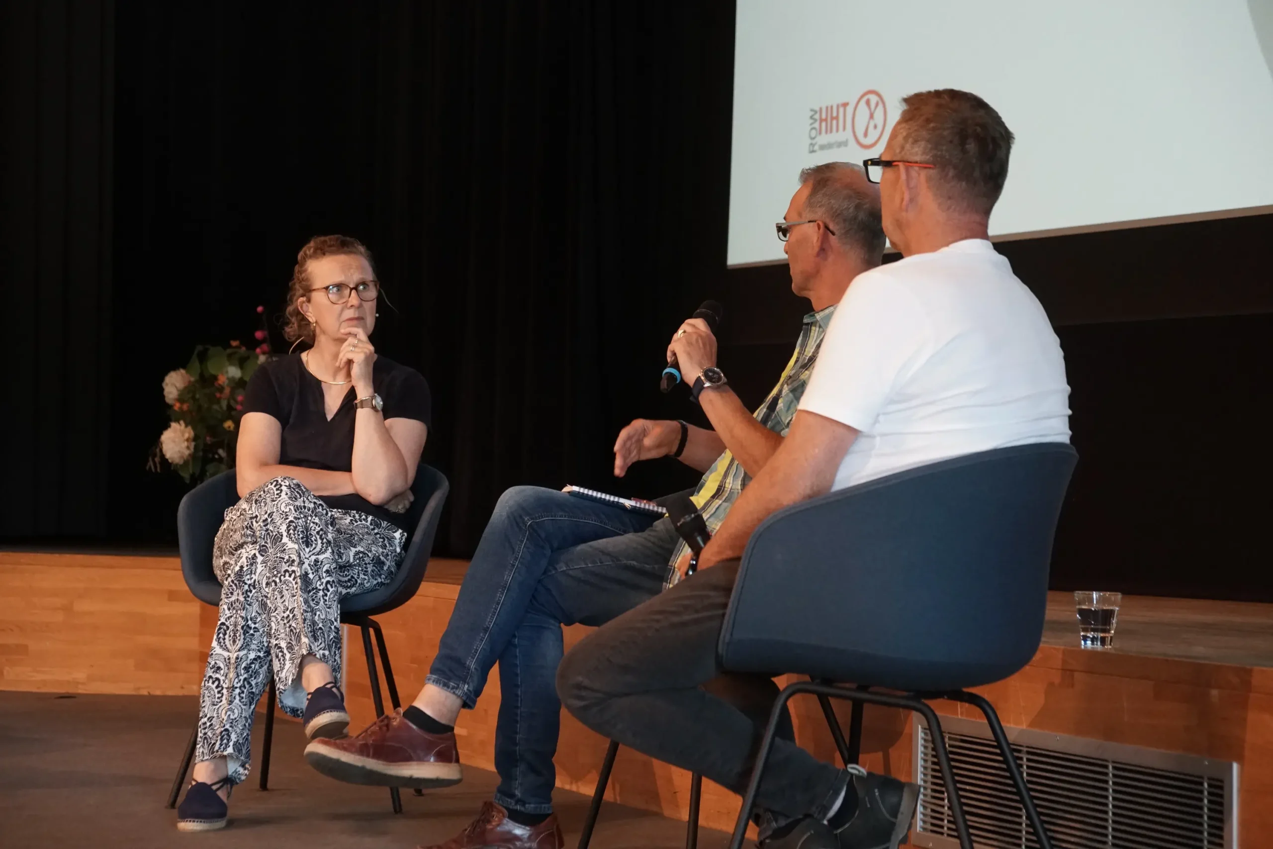 Christine had in haar presentatie al aangegeven dat mensen op heel uiteenlopende manieren omgaan met ziekte. Sommigen dragen het heel zwaar, terwijl anderen de ziekte juist sterk bagatelliseren. De twee ervaringsdeskundigen bleken duidelijk tot die laatste groep te behoren. Dat werd ook merkbaar in de reacties vanuit het publiek: er was veel verbazing over hoe licht zij met hun situatie omgaan. Een manier die niet voor iedereen vanzelfsprekend of haalbaar is.